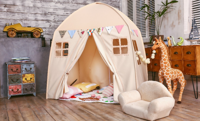 Быстро полюбится малышке детская палатка. Только не покупайте тёмные цвета, лучше остановитесь на светлых и позитивных оттенках. Ключевой плюс — палатка легко складывается, что позволяет брать вещь с собой на прогулки. Плюс она не занимает много места в доме. Пусть у ребёнка будет своё пространство: от этого хорошо будет всем. Большой выбор детских палаток на сайте mytoys.ru.