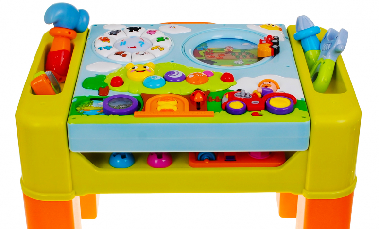 Такую игрушку можно заменить интерактивным столом — подобный вариант подарка уже получил массу положительных отзывов. Шуршалки, пищалки и самые внезапные фантазийные атрибуты закреплены на небольшой многофункциональной панели. Большой выбор интерактивных столов тут.