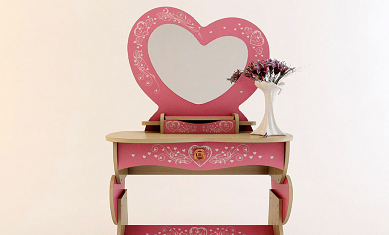 Маленькие дочки и день и ночь мечтают вырасти и быть как взрослые. Чтобы не лишать девочку удовольствия почувствовать себя большой, подарите ей туалетный столик с зеркалом в детскую комнату. В качестве подарка сюда же можно отнести идею красивого праздничного платья, туфелек или украшений.